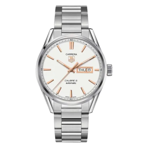 Tag Heuer Carrera Calibre 5 Silver Stainless Steel Silver Dial Automatic Gents Watch WAR201DBA0723 – 100% Authentic with Official Warranty & Free Shipping Across Pakistan.