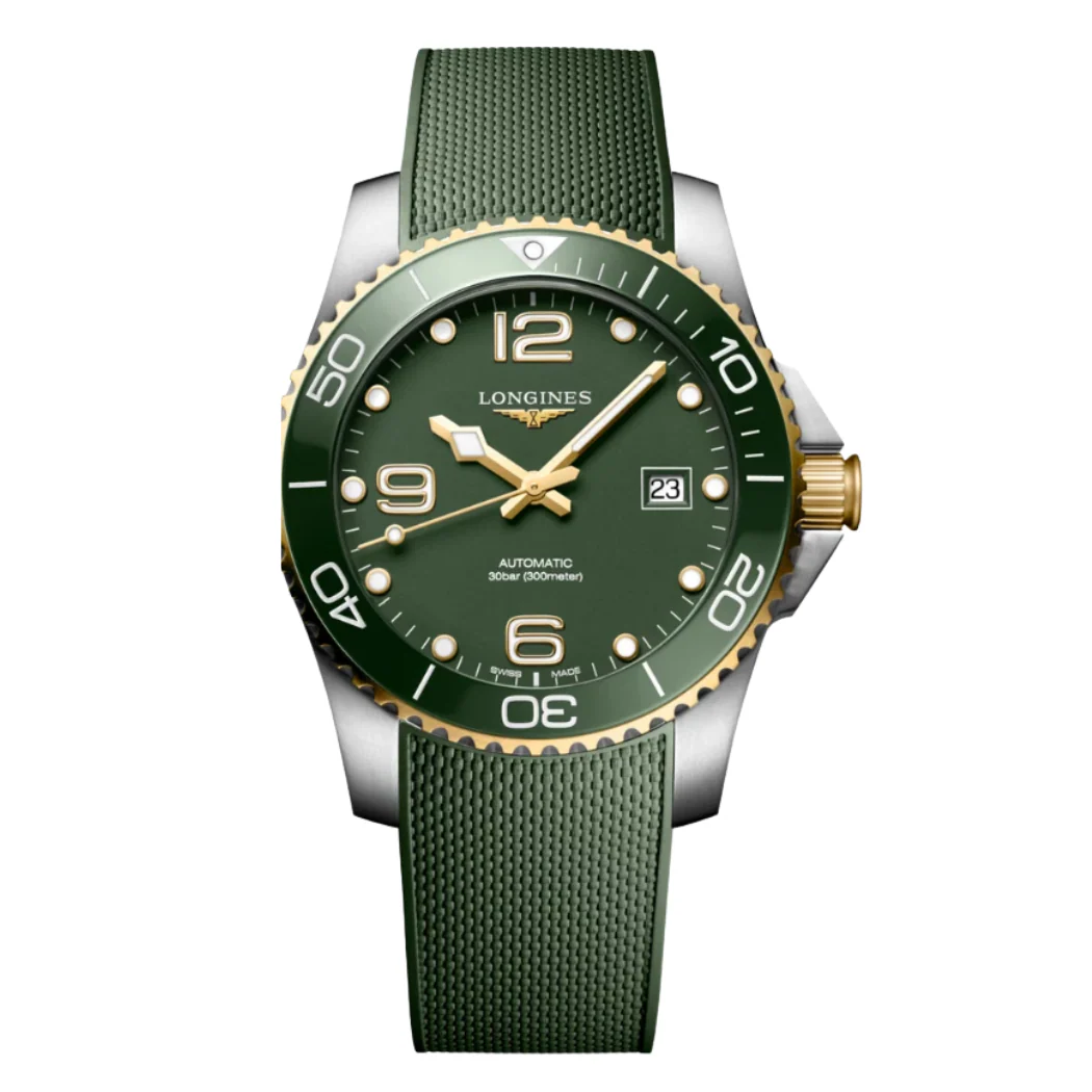 Longines HydroConquest Green Rubber Strap Green Dial Automatic Watch for Gents – L3.781.3.06.9