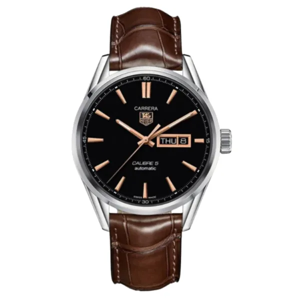 Tag Heuer Carrera Calibre 5 Brown Leather Strap Black Dial Automatic Watch for Gents – WAR201C.FC6291