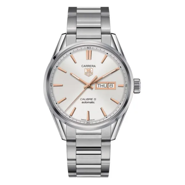 Tag Heuer Carrera Calibre 5 Silver Stainless Steel White Dial Automatic Gents Watch WAR201DBA0723 – 100% Authentic with Official Warranty & Free Shipping Across Pakistan.
